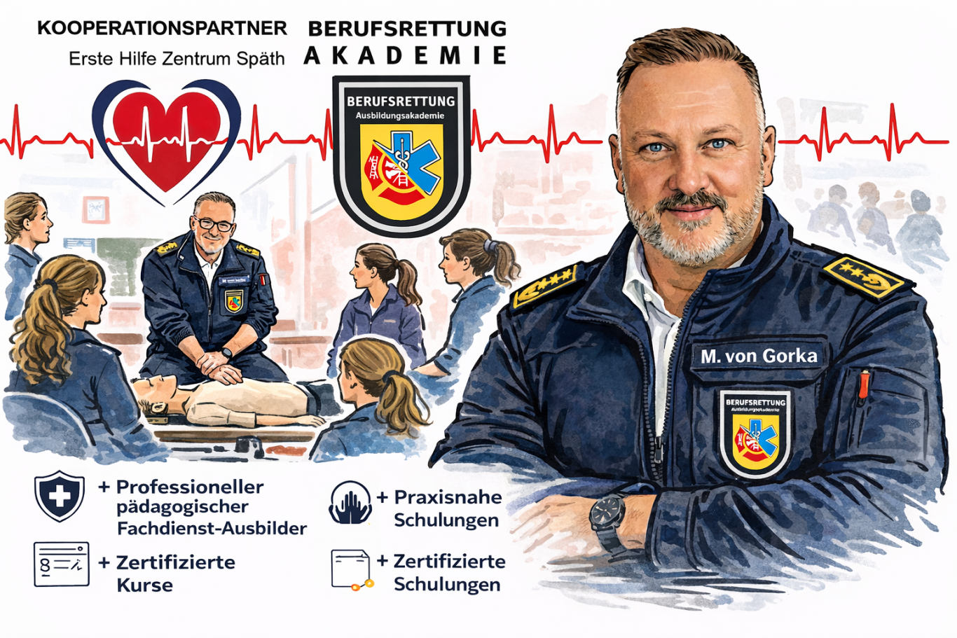 Alle Schulungen orientieren sich an aktuellen Richtlinien und legen besonderen Wert auf praxisnahe Übungen und realistische Notfallszenarien.